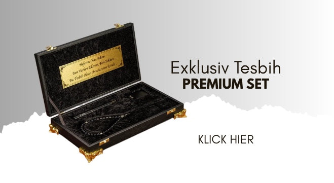 Ihrem Spezialisten für Tesbih-Gebetsketten, Schlüsselanhänger, Schmuck und exklusive Geschenkboxen. Jedes unserer Produkte wird mit viel Liebe zum Detail gefertigt und kann individuell nach Ihren Wünschen personalisiert werden.