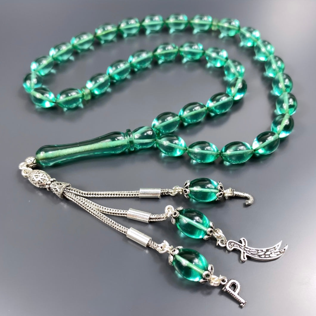 Turkuaz Renk SIKMA Kehribar Tesbih / Gebetskette personalisiert mit Logo