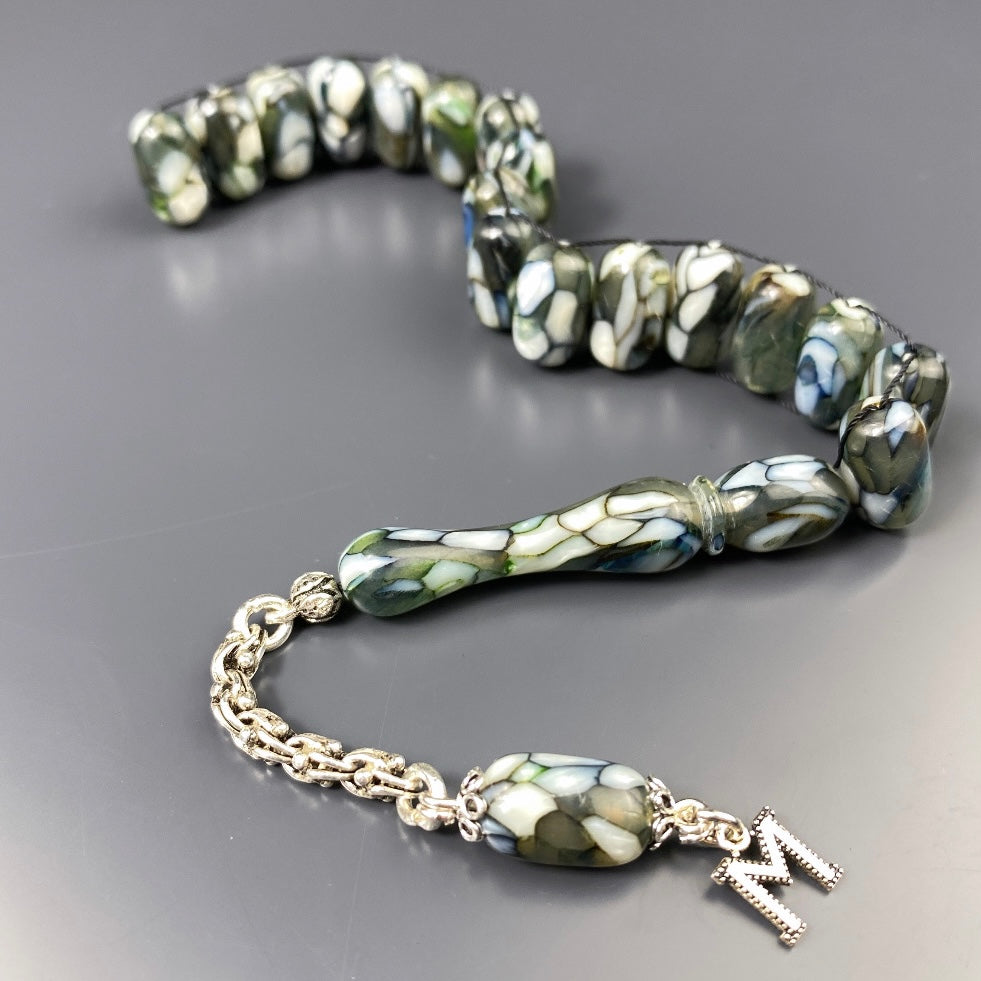 gestalte deinen personalisierten Ates / Sikma Kehribar Tesbih ( Gebetskette ) mit Wunsch Buchstaben und einem Logo deiner Wahl.